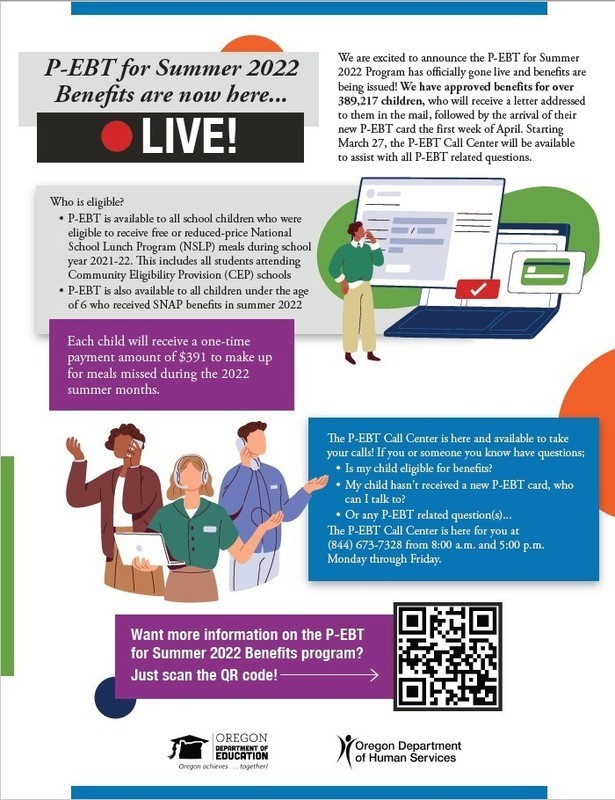 Great News! P-EBT benefits for Summer 2022 are here!